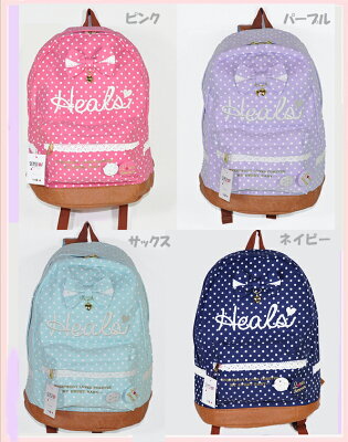 A677■お楽しみプレゼント付【ニューヒールズ デイパックリュックサック 】Heals52361ジュニア水玉リュックおしゃれキャンバスリュック小学生中学生女子にドット柄リュックサックデイバックりぼん大容量アウトドアにキッズリュックキッズボディバッグSenseofJapan修学旅行