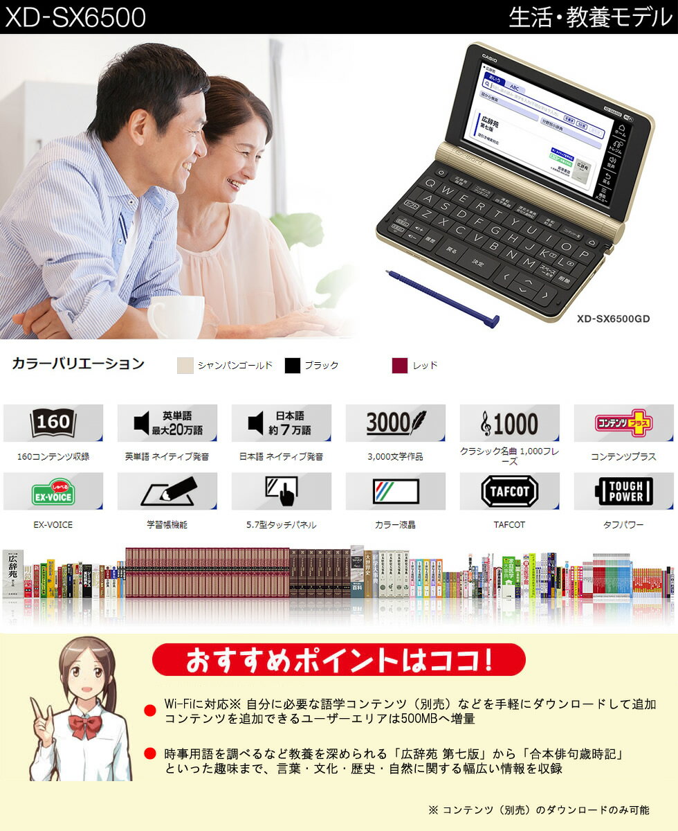 カシオ 電子辞書 XD-SX6500GD シャンパンゴールド / 生活・教養モデル エクスワード 広辞苑 第七版収録/言葉や文化、歴史や自然に触れて、日本の知識を深める 160コンテンツを収録 CASIO EX-word 【ギフトラッピング対応】【生活・ビジネスモデル】