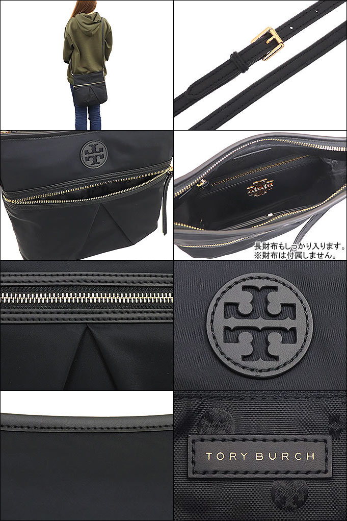 ●【トリーバーチ TORY BURCH】 ナイロン スイング パック 名称NYLON SWING PACK 種類 バッグ/ショルダーバッグ サイズ 横幅:27cm 高さ:26.5cm マチ:6cm ショルダー:115cm〜125cm 重さ:250g 仕様間口:ファスナー開閉 前面:ファスナーポケット×1 内面:ファスナーポケット×1 オープンポケット×2 スナップボタンポケット×1 ショルダー:長さ調節可能 ●トリーバーチの長財布が入ります 素材ナイロン×レザー カラー ブラック #001 BLACK 【金具の色】ゴールド 型番 73202 0520 付属品 なし トリーバーチ TORY BURCHのバッグ(ショルダーバッグ)です。