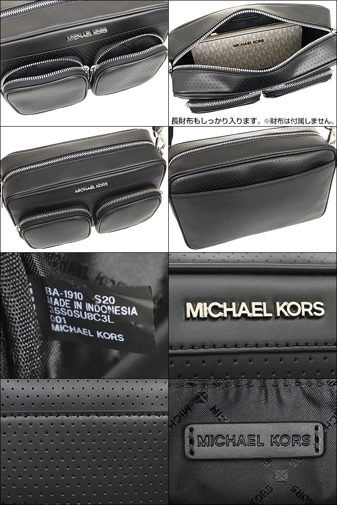 ●【マイケルコース MICHAEL KORS】 ハノーバー レザー ラージ EW クロスボディー 名称HANOVER LG EW CROSSBODY 種類 バッグ/ショルダーバッグ サイズ 横幅:25cm 高さ:16cm マチ:8cm ショルダー:82cm〜140cm 重さ:460g 仕様間口:ファスナー開閉 前面:ファスナーポケット×2 内部:ファスナーポケット×1 オープンポケット×1 背面:オープンポケット×1 ショルダーストラップ:取り外し可能、長さ調節可能 ●マイケル・コースの長財布が入ります 素材レザー カラー ブラック BLACK 【金具の色】シルバー 型番 35S0SU8C3L 付属品 なし 【2020 春夏 新作】 マイケルコース MICHAEL KORSのバッグ(ショルダーバッグ)です。