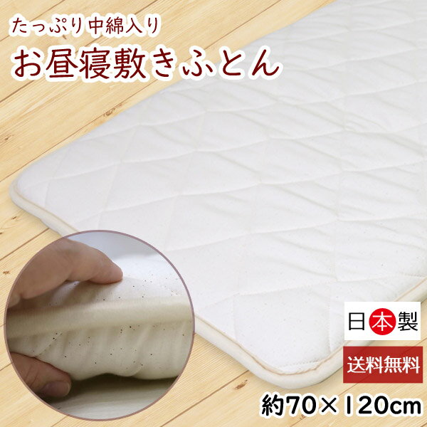お昼寝布団 固綿入り ボリュームたっぷり お昼寝敷き布団 【 日本製 】お昼寝マット 70×120cm 無漂白 ベビー 敷き布団 ベビー布団 ごろ寝マット ごろ寝布団 マットレス キッズ 保育園 お昼寝敷布団 固わた お昼寝用敷布団 ベビーベッド