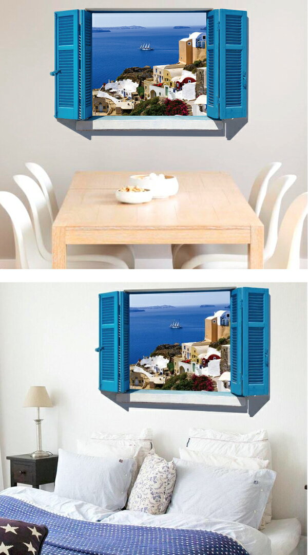 ウォールステッカー 窓 おしゃれ 壁のシール お風呂 壁紙 トイレ 風景 ウォールステッカー 海 リビング かわいい インテリア 景色 ブルー 青空 植物 花 木 地中海 船 ビーチ 綺麗 海岸 サーフ ウィンドウ 写真 地図 南国 空 大きい 窓の景色 浴室 施設 観光地 海辺 街 外国